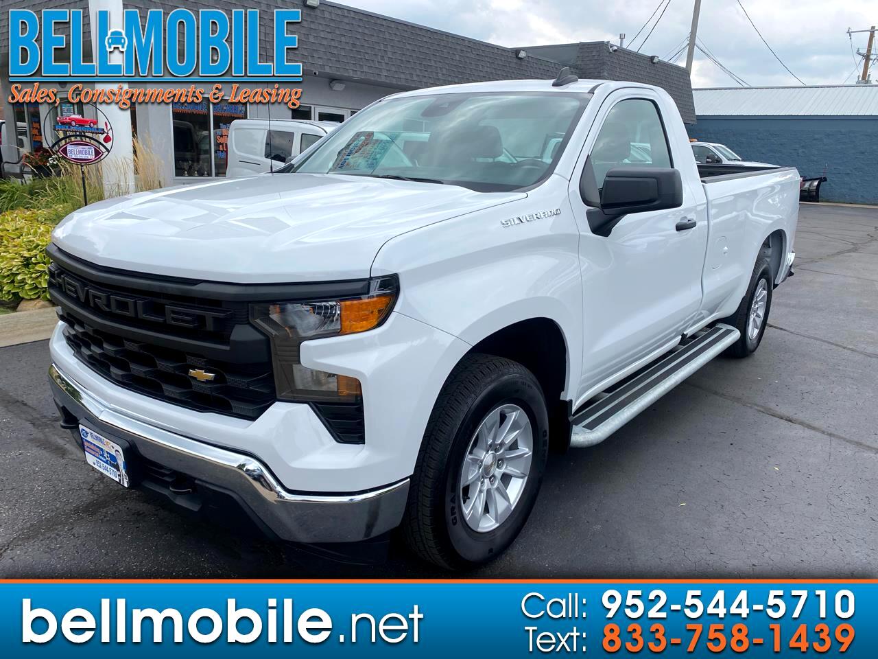 This One Owner, Low Mileage, 2024 Chevrolet Silverado 1500 Reg. Cab. Pickup 2WD is equipped w/White Exterior w/Jet Black Cloth Interior, 5.3L V8 Engine w/Push Button Start, Automatic Transmission w/Overdrive, Air Conditioning, Cruise Control, Tilt, AM/FM/AUX Stereo Radio, Bluetooth, Apple Car Play, Android Auto, Power Windows, Locks, Mirrors, Anti-Lock Brakes, Rear Vision Camera, Remote Keyless Entry, Plus all Standard Options, Plus More. Well Maintained & Serviced. SERVICE RECORDS Available on CARFAX.Com. Free CARFAX Vehicle History Report Available Upon Request. Balance of GM Factory Warranty. Call for More Details! Financing Available with Approved Credit. BellMobile Sales & Leasing, The Place for Buying, Selling, and Leasing Vehicles! Visit BellMobile Inc. online at www.bellmobile.net to see more pictures of this vehicle or call us at 952-544-5710 today to schedule your test drive!